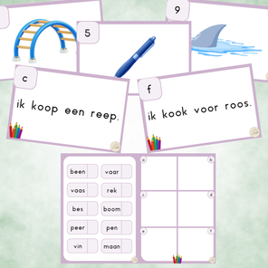 Passend bij de letteropbouw van de zoemversie van de methode Veilig leren lezen. Hang de kaarten op in de klas of op het schoolplein. Met hun werkblad lopen de kinderen langs de opgehangen kaarten. Bij 10 kaarten moeten de kinderen het woord koppelen aan de afbeelding en bij de andere 6 kaarten maken ze een tekening bij de zin.